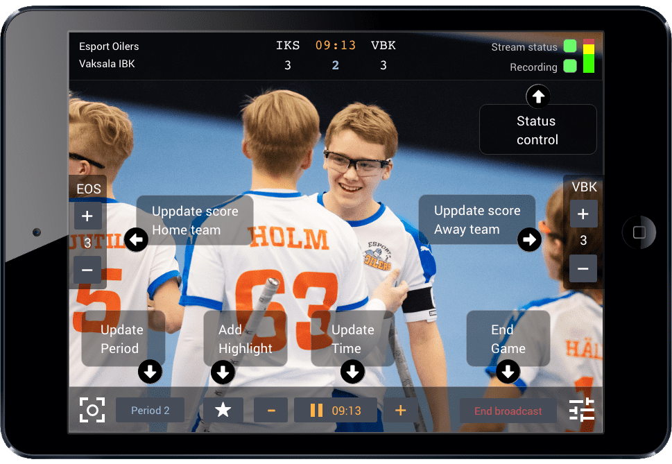 Viktigt: Kom ihåg att uppdatera period, mål och och klocka under själva sändningen och följ spelet genom skärmen, då kommer du förmedla en bra upplevelse för tittarna.